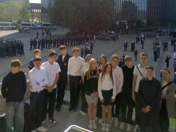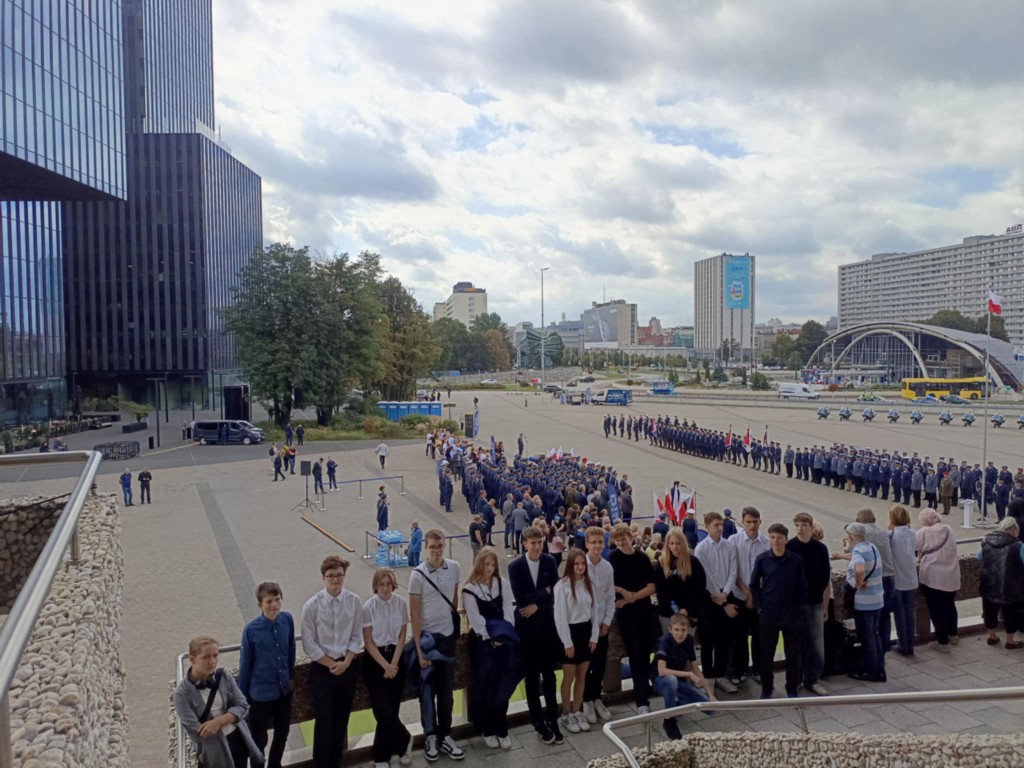 Nasza klasa mundurowa miała zaszczyt uczestniczyć w wyjątkowym wydarzeniu, które odbyło się 19 września na Placu Sławika i Antalla w Katowicach, tuż przed ikoną miasta – halą „Spodek”. Podczas uroczystości uczniowie wzięli udział w: