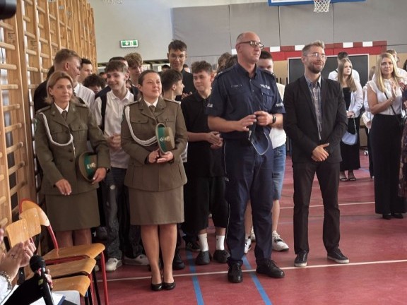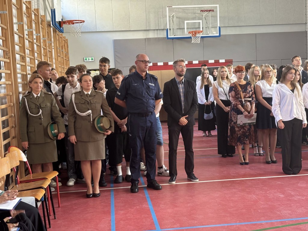 Po raz pierwszy naukę w murach naszej szkoły rozpoczynają uczniowie oddziału mundurowego, którzy będą się przygotowywać do podjęcia pracy w policji i straży granicznej. To pionierski rocznik młodzieży, która zdecydowała się na wybór wymagającej, ale niezwykle wartościowej drogi. W mundurze nie tylko będą uczyć się dyscypliny i odpowiedzialności, lecz także staną się wizytówką szkoły i środowiska lokalnego. To dla nas powód do ogromnej dumy i satysfakcji. Uczniów oddziału mundurowego powitali przedstawiciele służb mundurowych:
