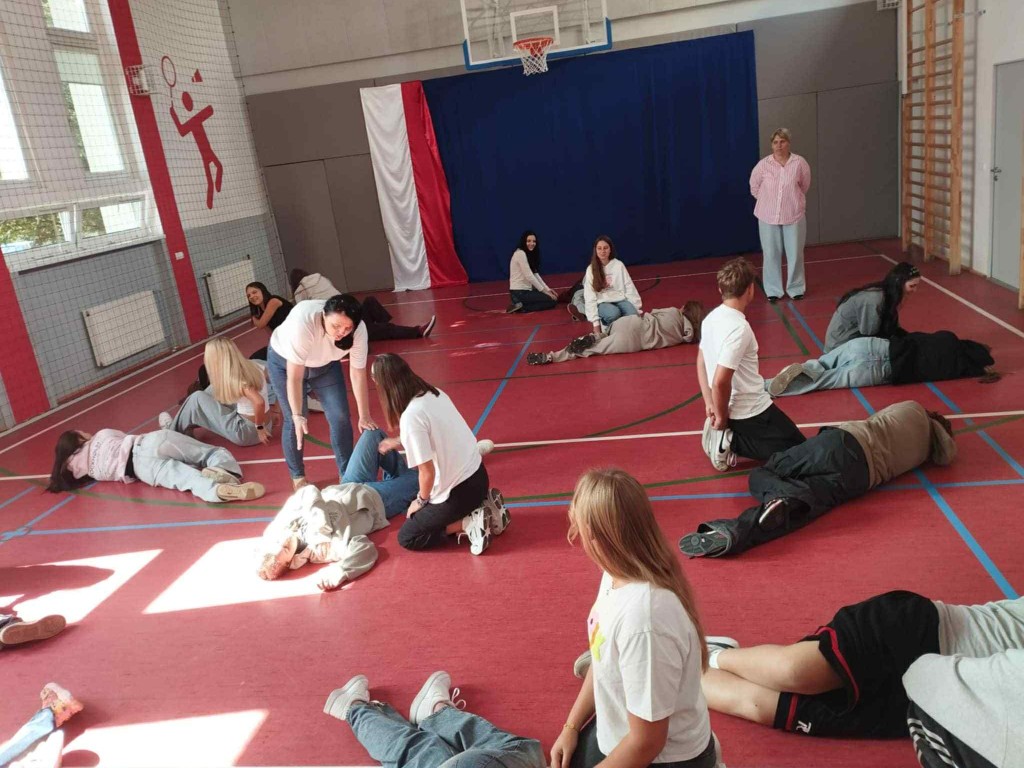 Zajęcia miały charakter praktyczny – uczniowie aktywnie uczestniczyli w ćwiczeniach, odgrywali scenki sytuacyjne i zadawali wiele pytań. Dzięki temu mogli nie tylko zdobyć wiedzę teoretyczną, ale także przećwiczyć konkretne działania w symulowanych sytuacjach zagrożenia życia.